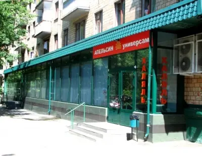 Полностью хапяльный продуктовый универсам самообслуживания. Принимают карты.