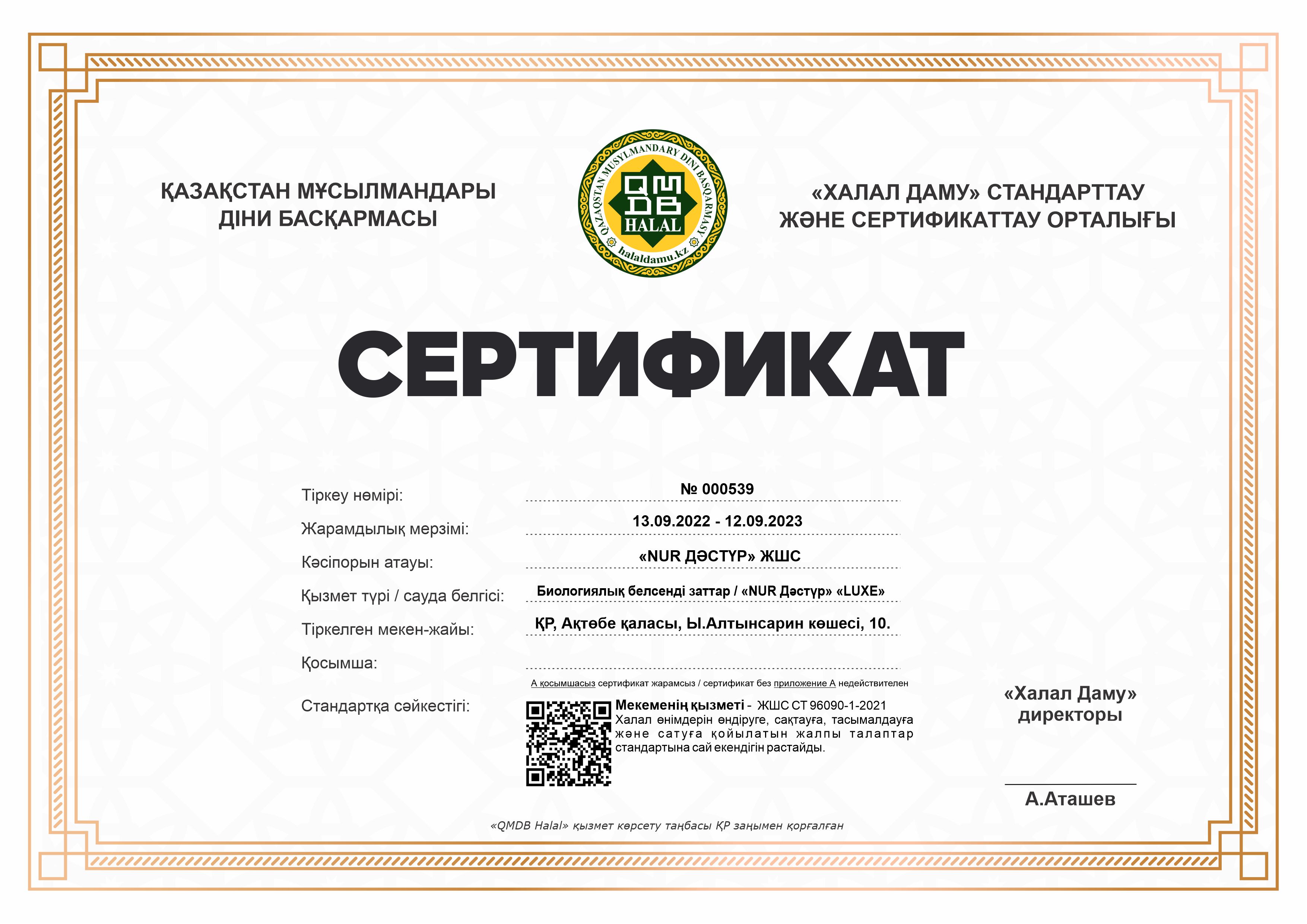 Сертфикат действителен до 14 сентября 2023 г.