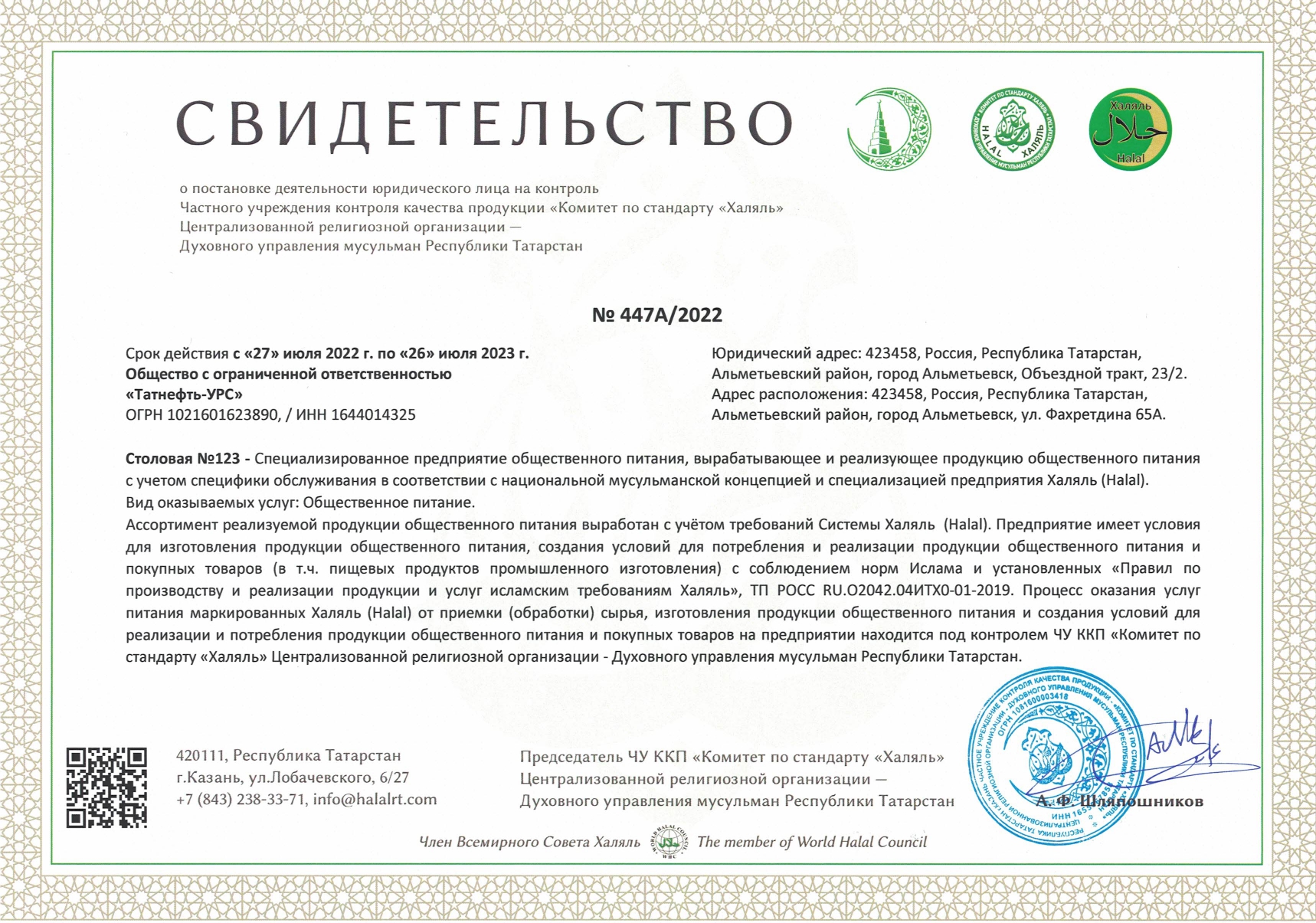 Мы не несем ответственности за услуги, реализуемые организациями, находящимися у нас в базе. Просьба дополнительно уточнять у лиц, предоставляющих продукцию халяль. (47892)