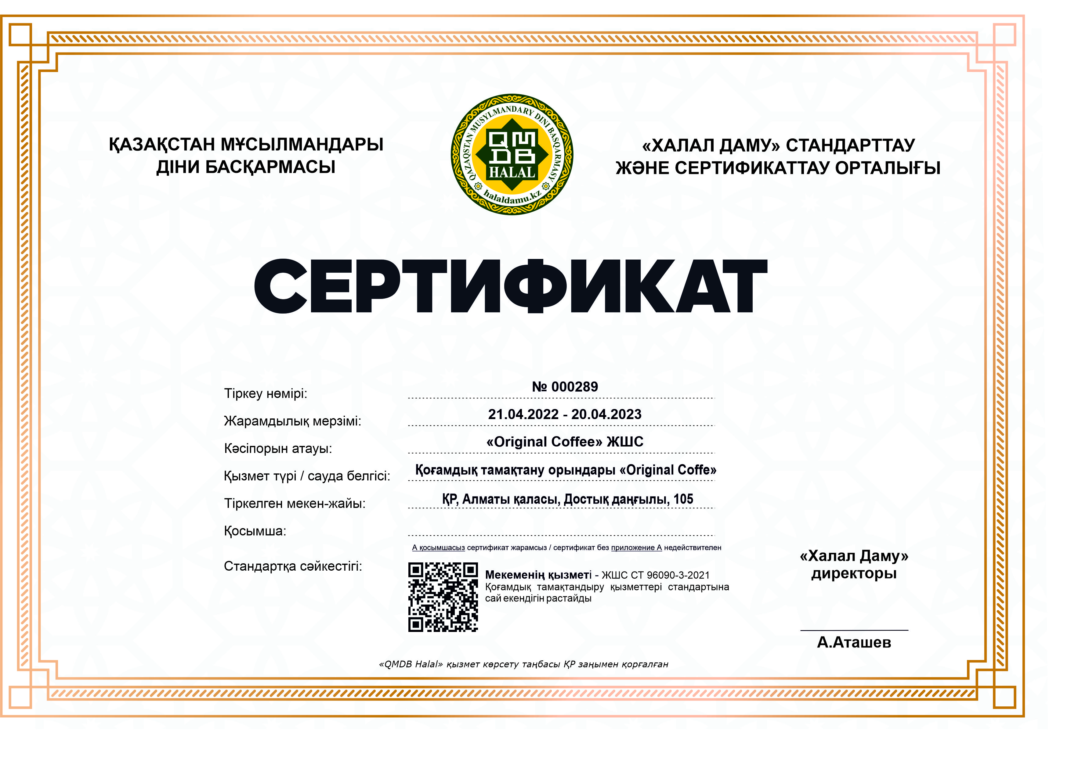 Сертфикат действителен до 20 апреля 2023 г.