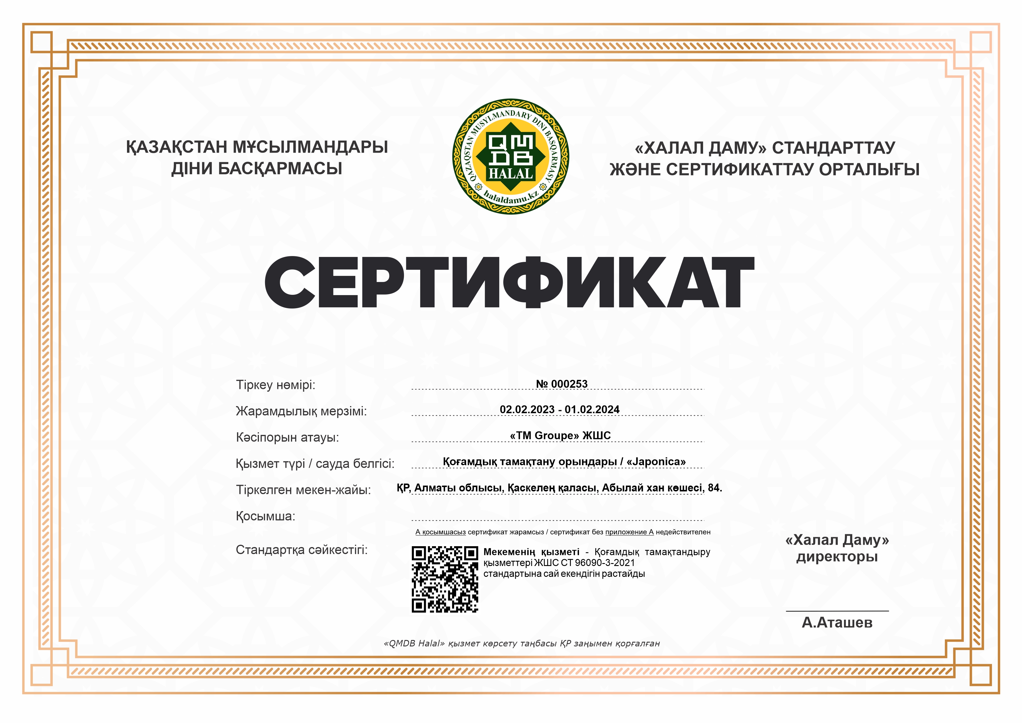 Сертфикат действителен до 1 февраля 2024 г.