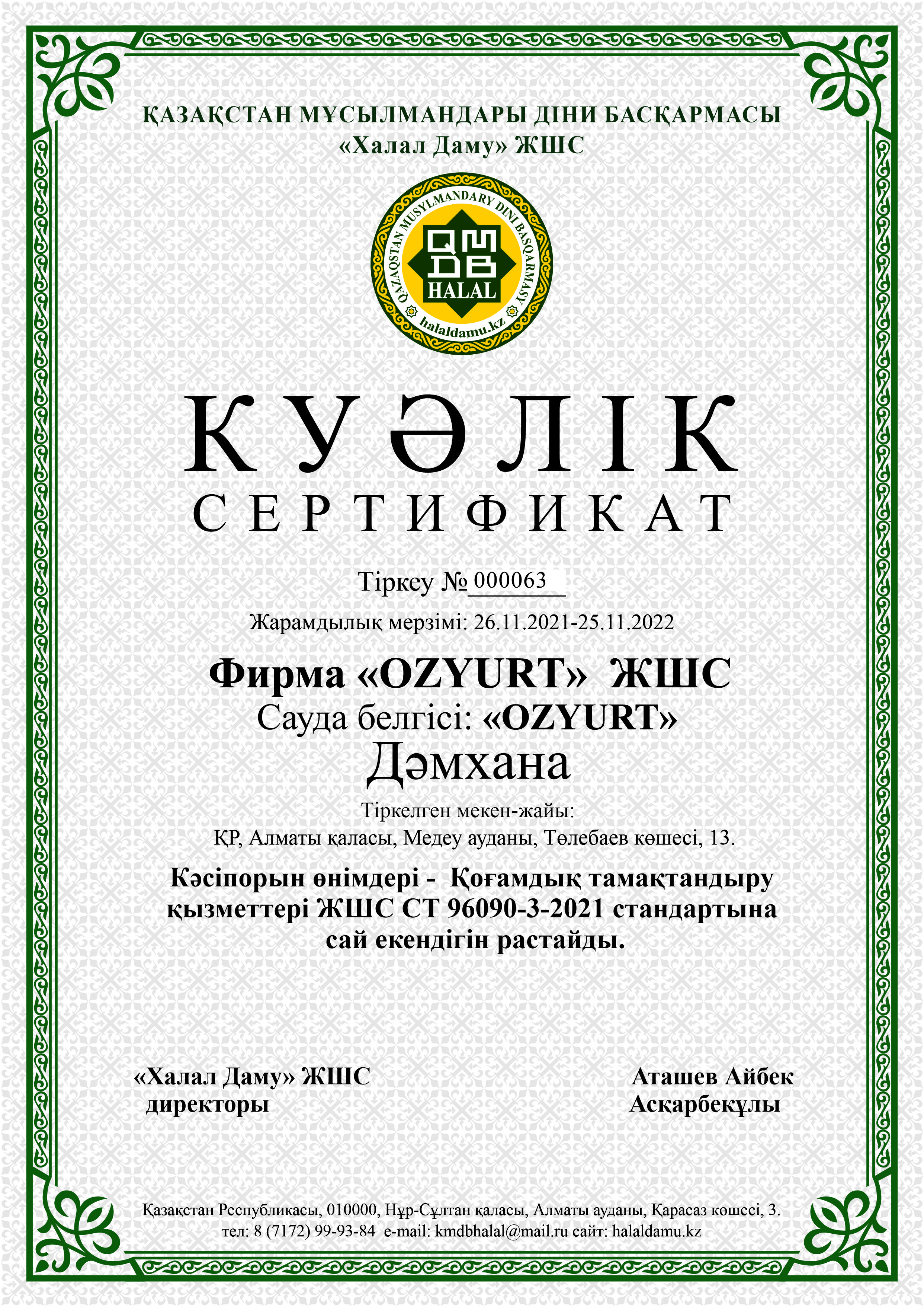 Сертфикат действителен до 25 ноября 2022 г.