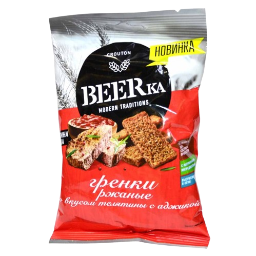 Гренки BEERka ржаные вкус телятина с аджикой 60гр