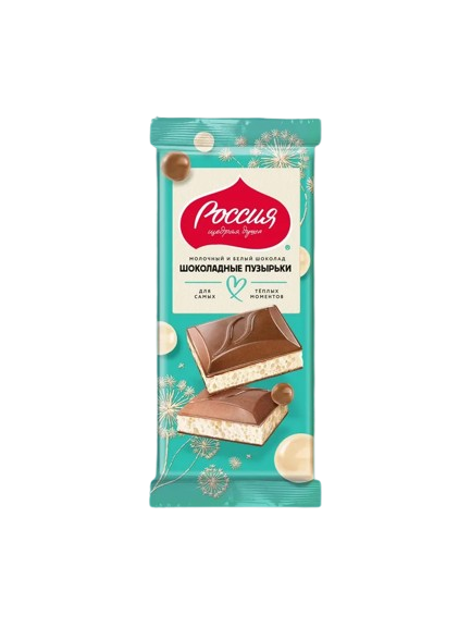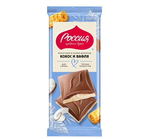 Молочный и белый шоколад Россия - Щедрая душа! с кокосовой стружкой и вафлей, 75 г