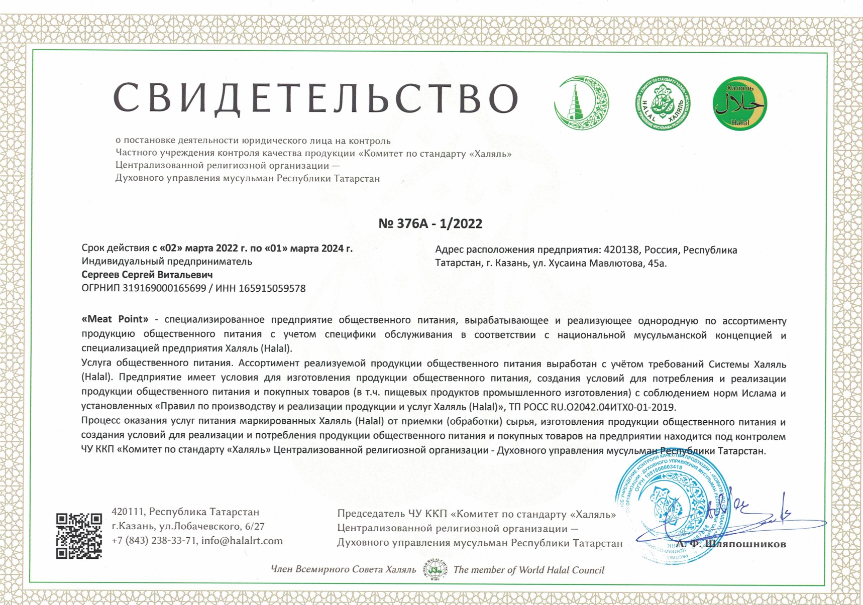 Сертфикат действителен до 1 марта 2024 г.