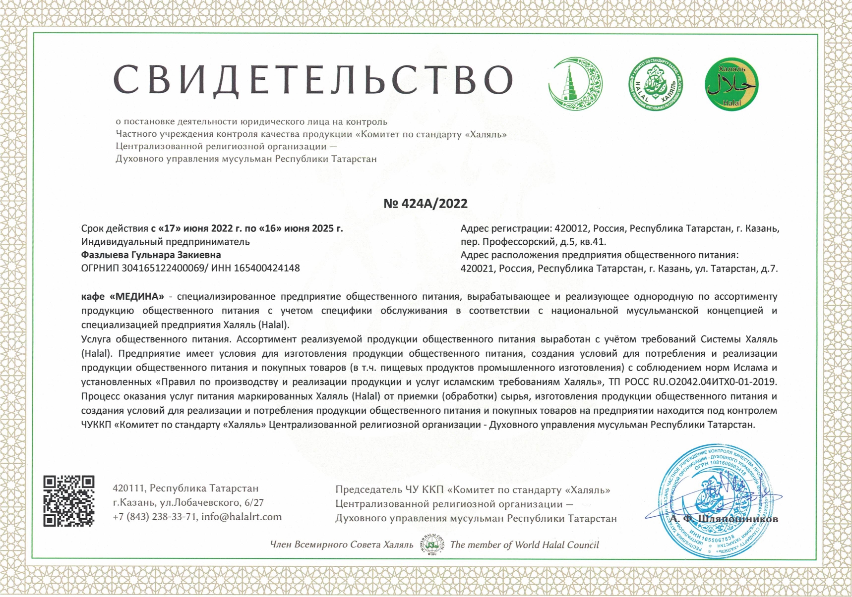 Сертфикат действителен до 16 июня 2025 г.