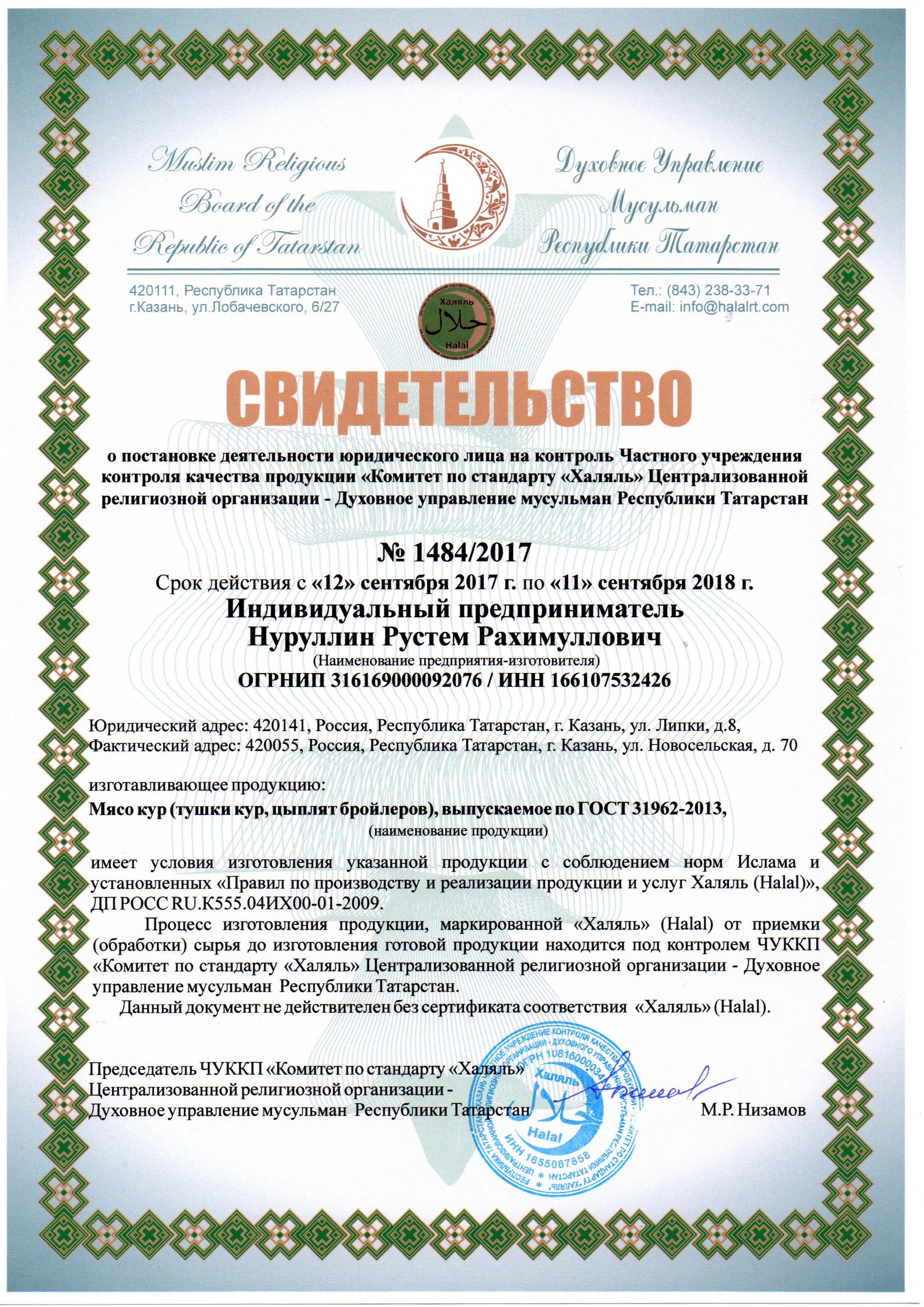 Сертфикат действителен до 11 сентября 2018 г.