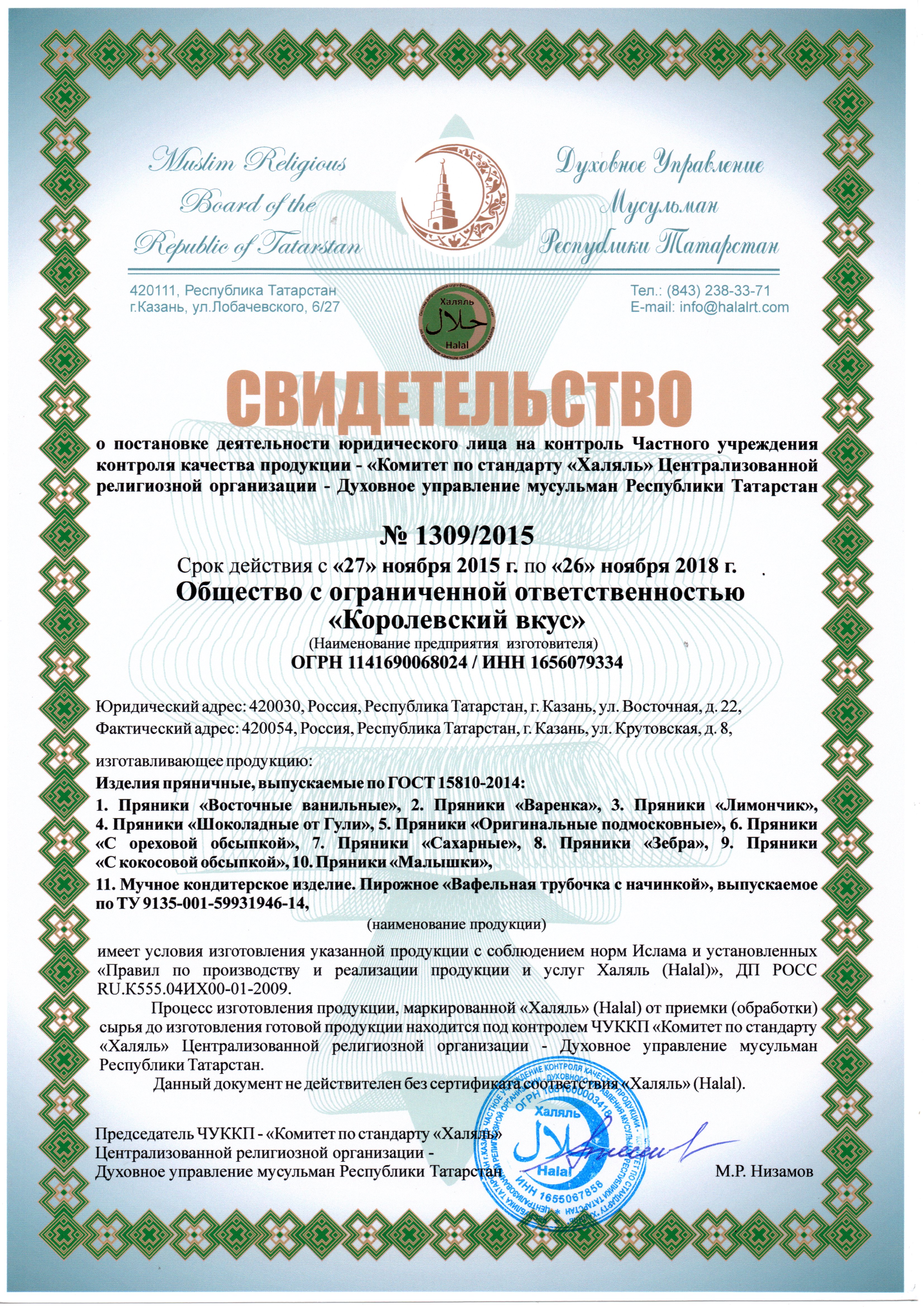 Сертфикат действителен до 26 ноября 2018 г.