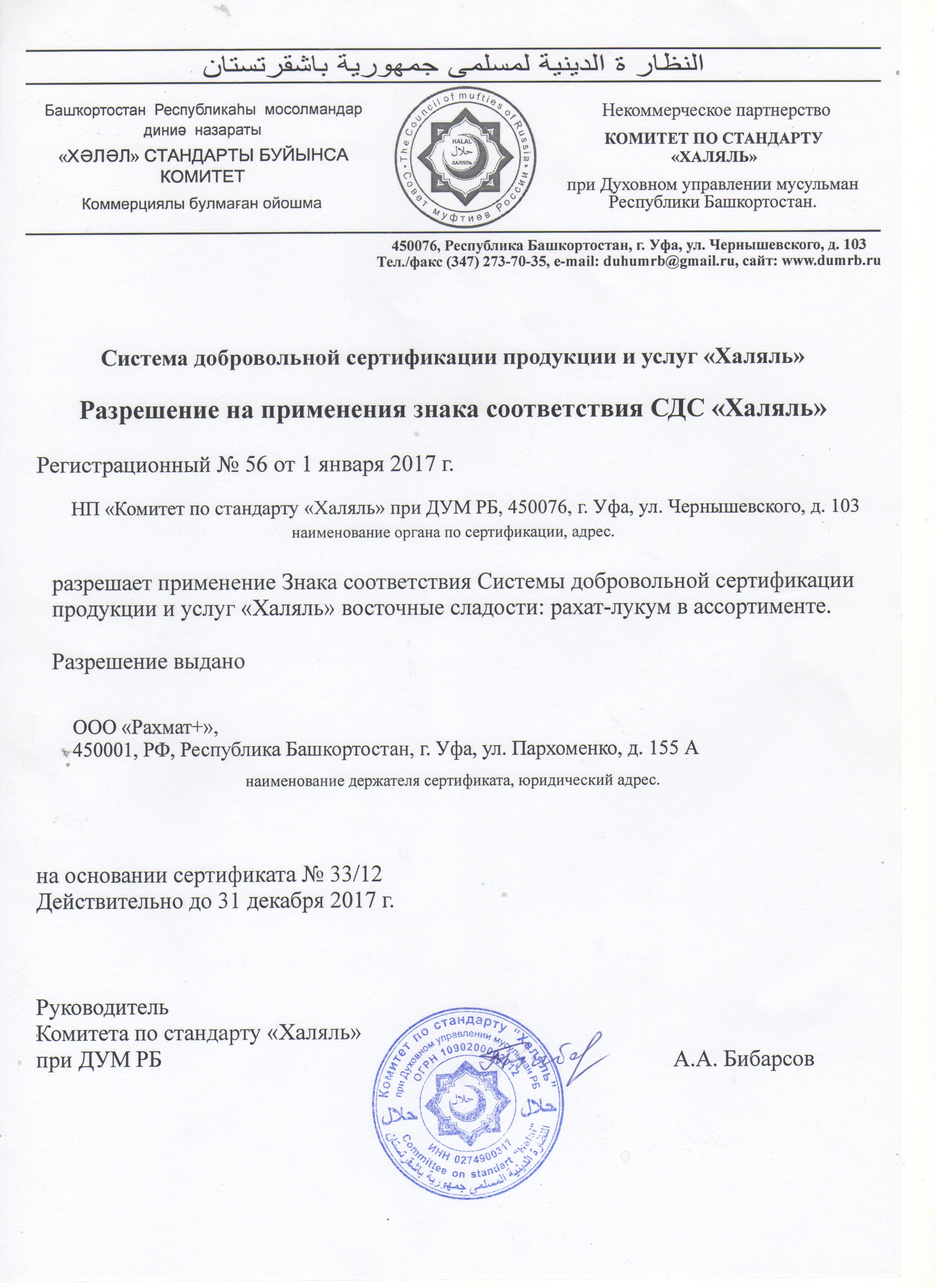 Сертфикат действителен до 31 декабря 2017 г.