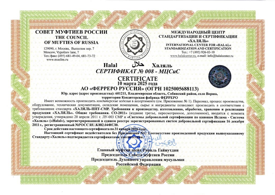 Международный центр стандартизации и сертификаци халяль. Совета муфтиев России