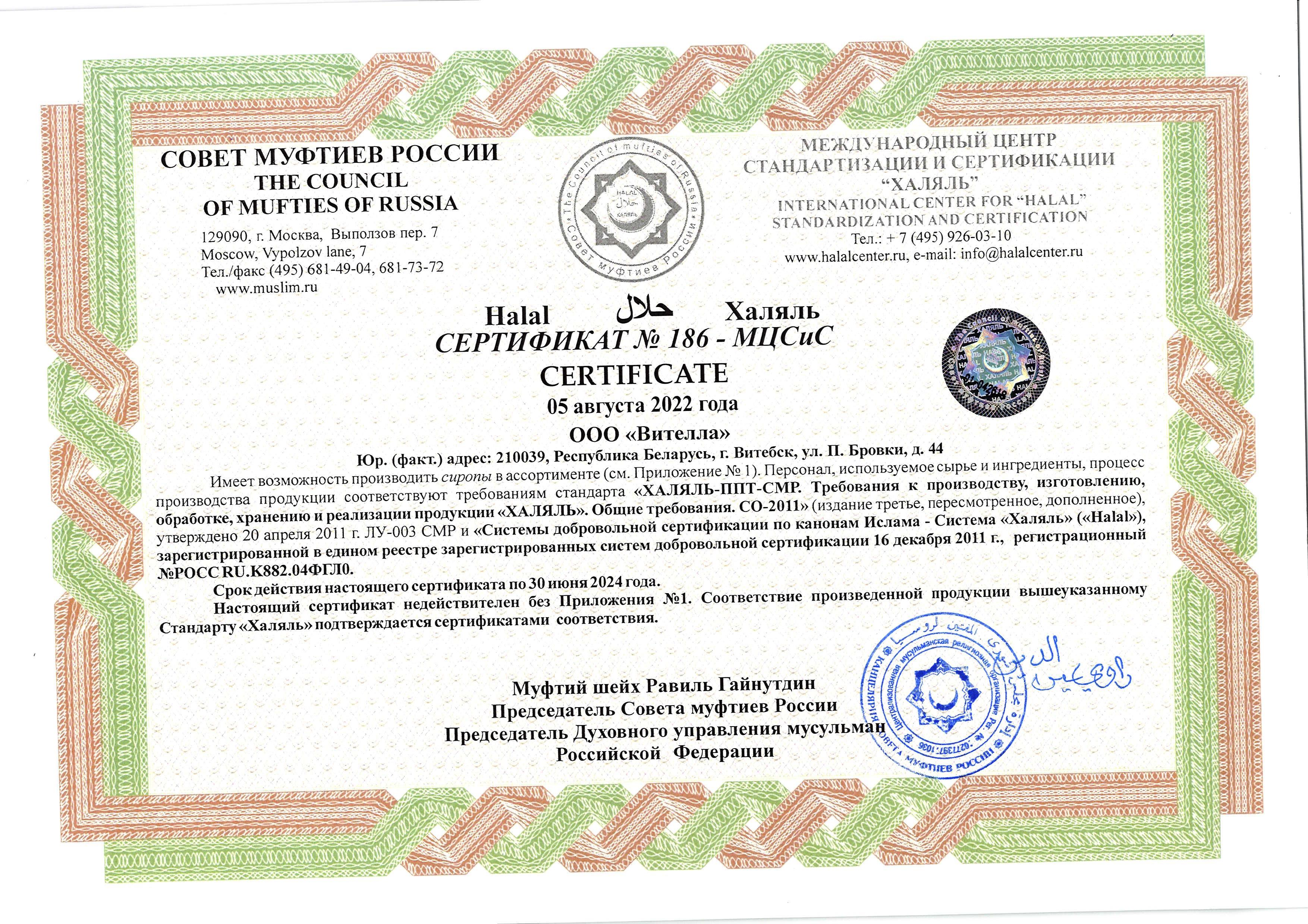 Сертфикат действителен до 30 июля 2024 г.