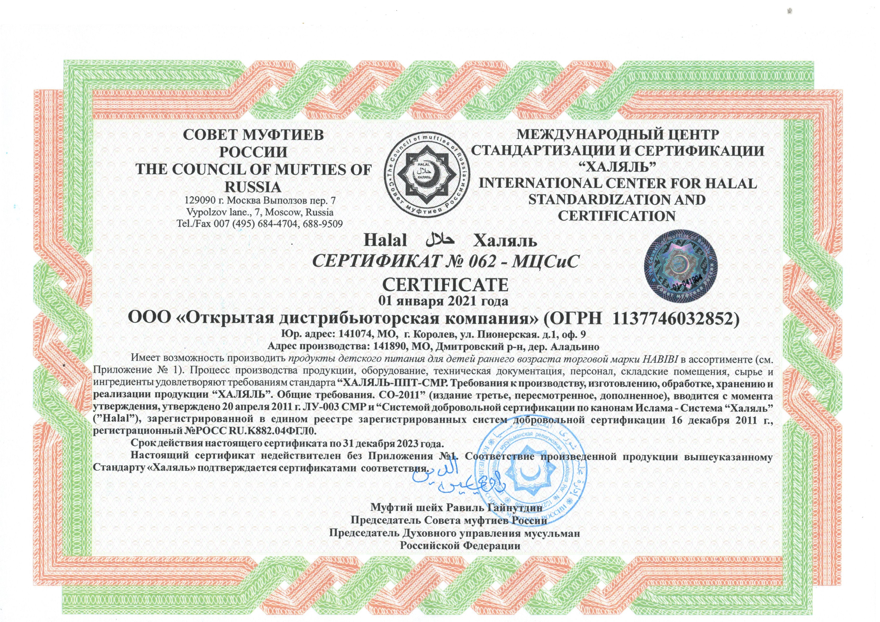 Сертфикат действителен до 31 декабря 2023 г.