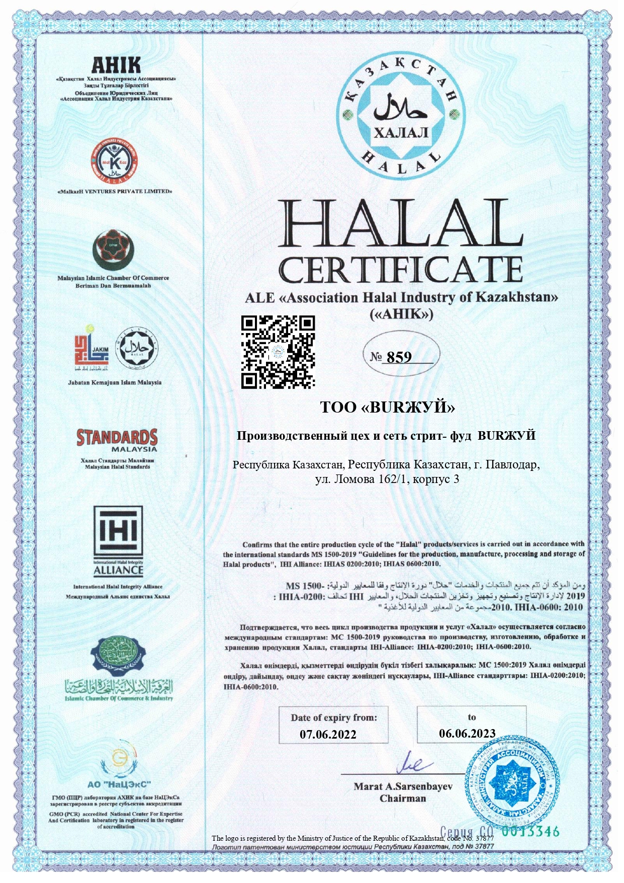 Сертфикат действителен до 6 июня 2023 г.