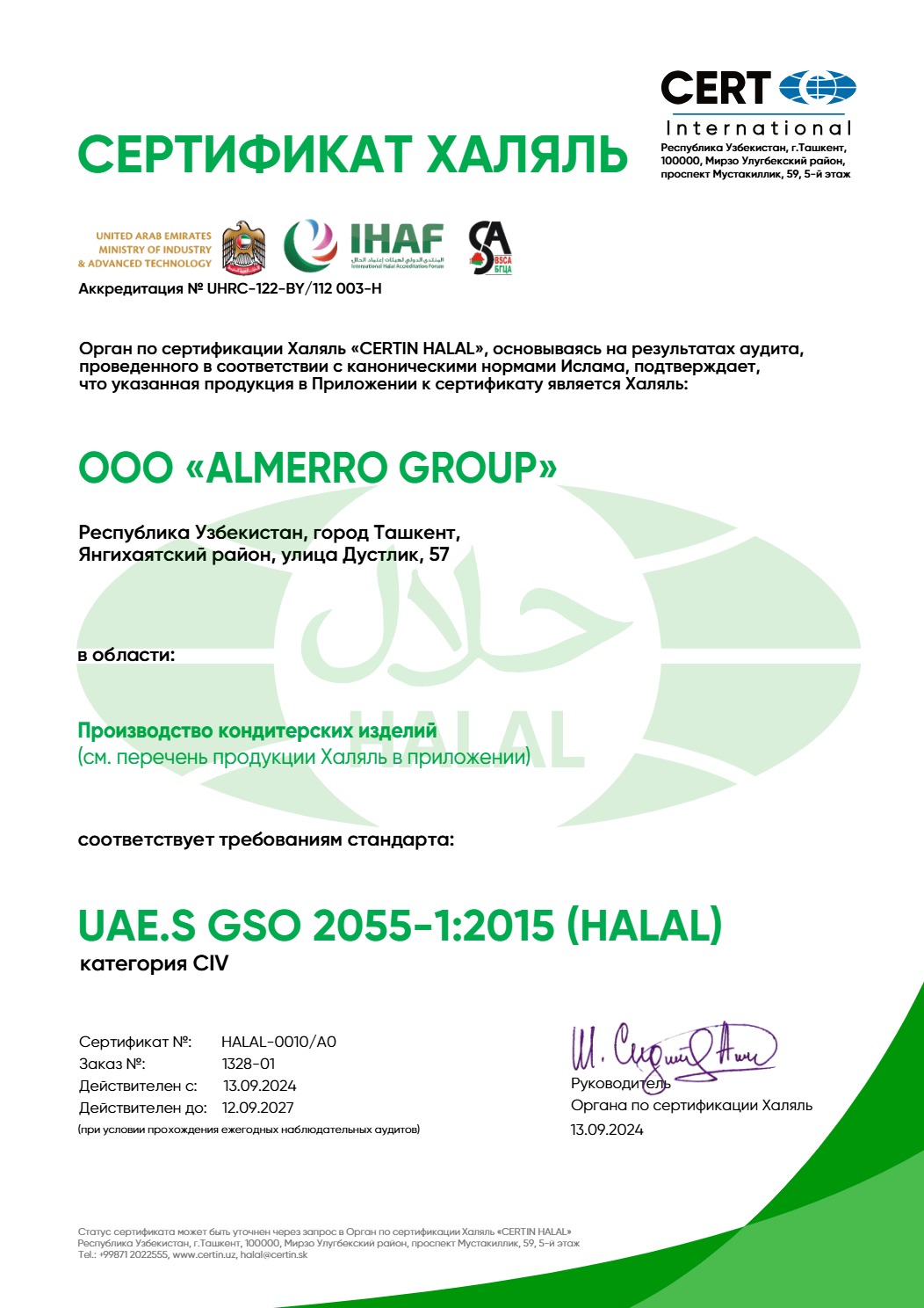 Сертфикат действителен до 12 сентября 2027 г.
