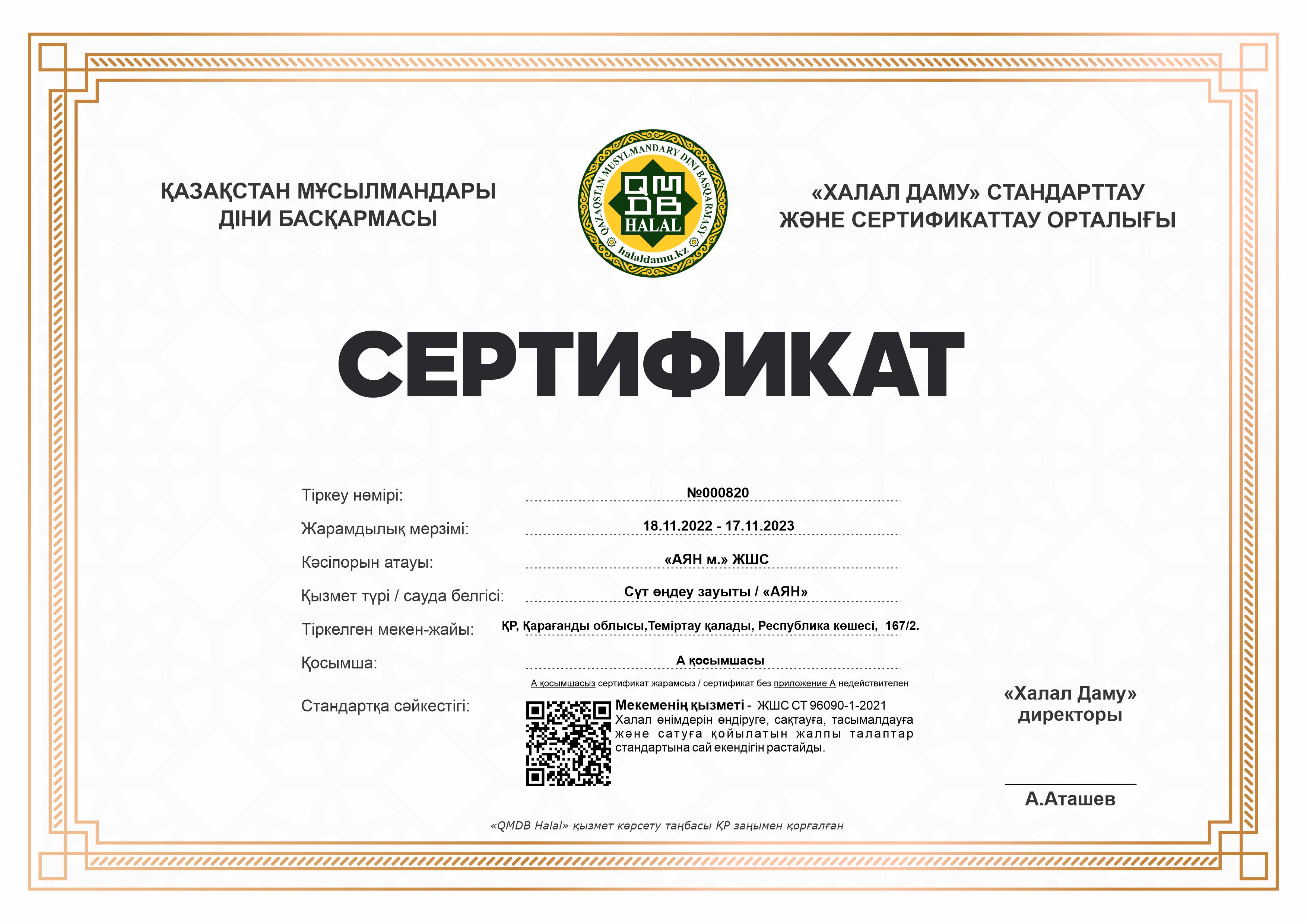 Сертфикат действителен до 17 ноября 2023 г.