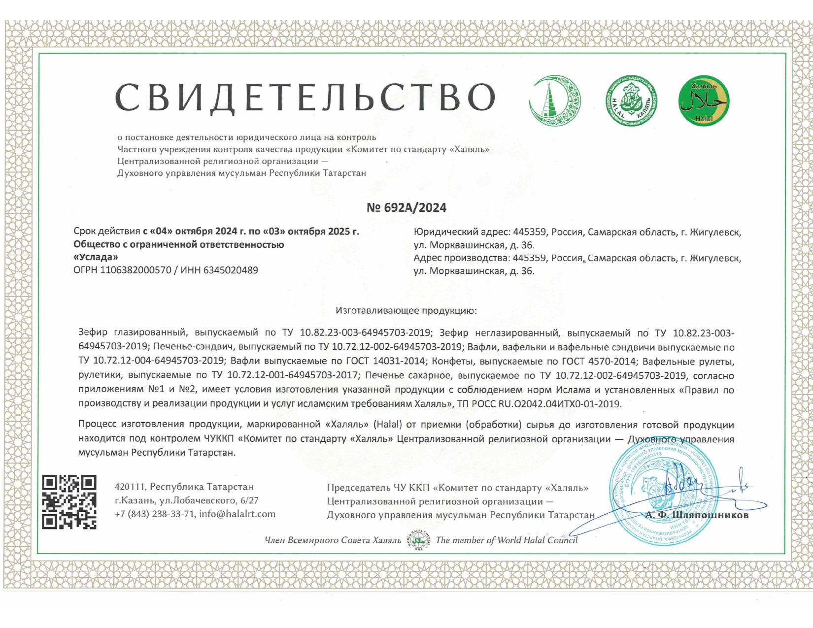 Мы не несем ответственности за услуги, реализуемые организациями, находящимися у нас в базе. Просьба дополнительно уточнять у лиц, предоставляющих продукцию халяль. (64364)